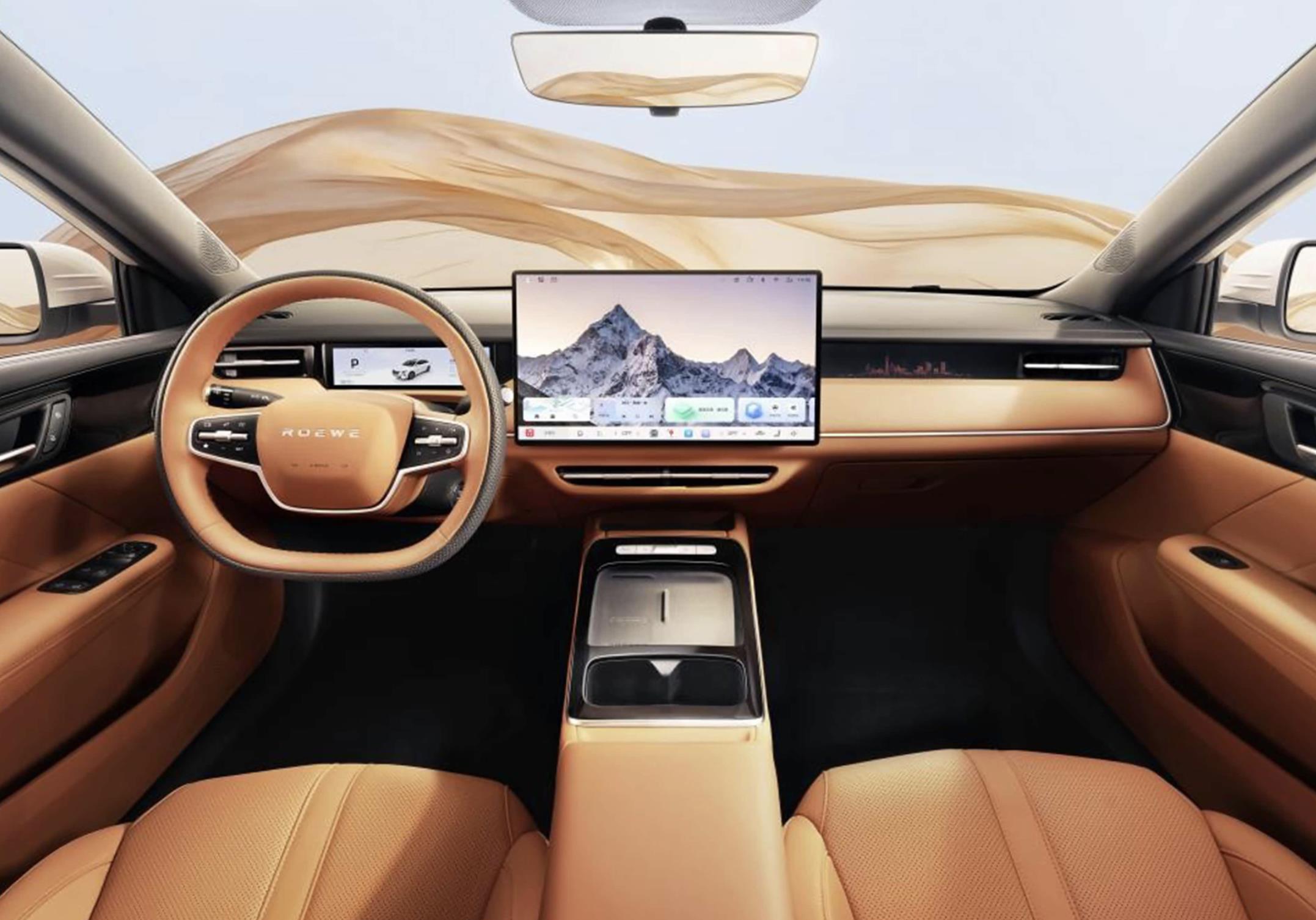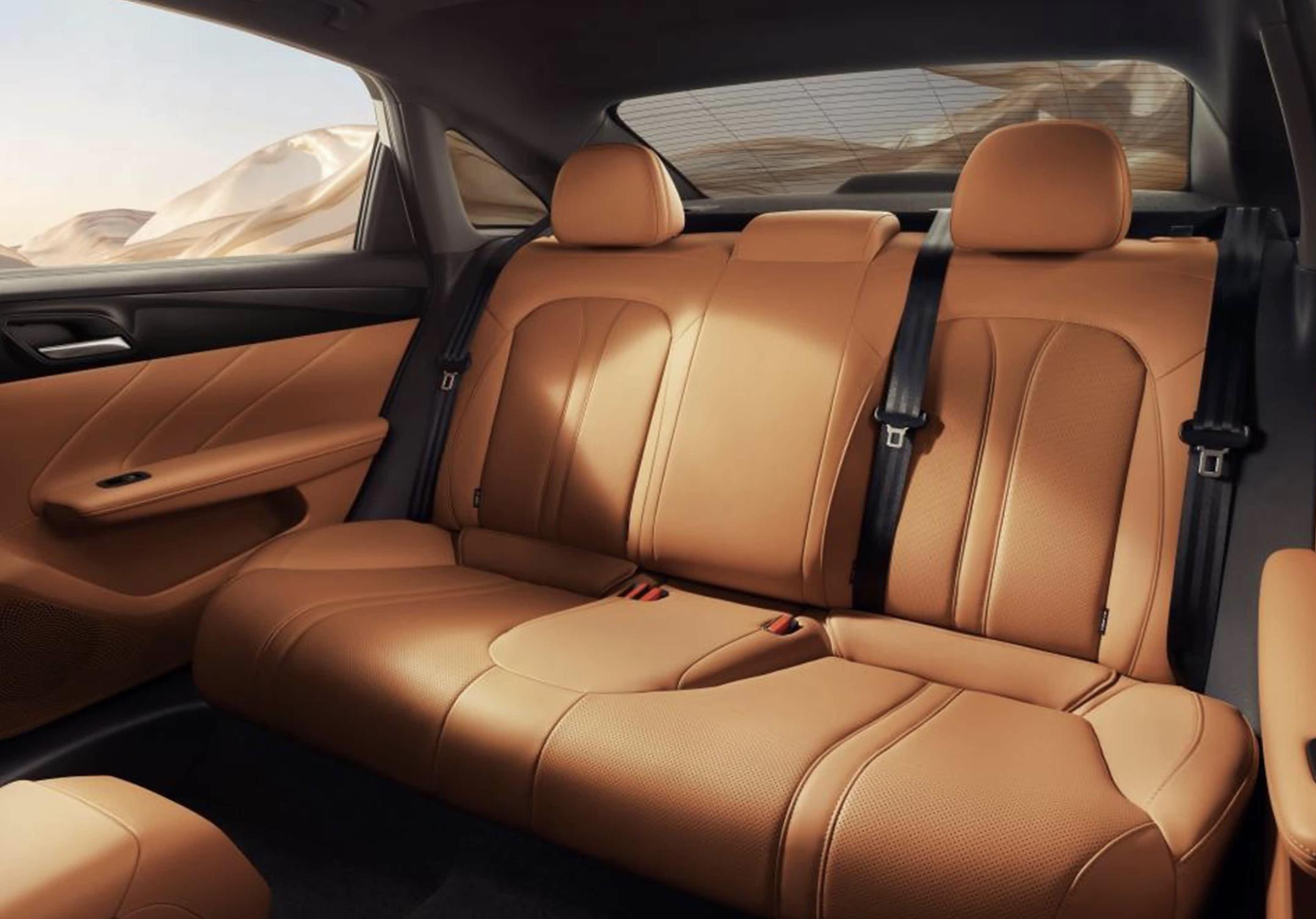 进入车内,全新的荣威i6采用了卡其色、浅灰色和米白色的搭配,还运用了大面积软质材料铺陈,大块亮黑色钢琴烤漆装饰面板的点缀,还有银色金属装饰条以及别致的空调出风口设计,也让车内更有格调,营造出豪车的温馨感和氛围感。科技感方面,该车配备了12.3英寸全液晶仪表和15.6英寸悬浮中控屏,内置升级后的高通骁龙8155芯片,确保操作中的流畅度。这套组合和荣威M7 DMH一致,也就是说,荣威M7 DMH搭载的豆包深度思考大模型也很有可能会出现在全新荣威i6上,这在A+级传统油车市场里,可以说是较大竞争力之一。中控台下部是手机无线充电面板,新车采用怀挡设计。新车后排也提供了宽敞舒适的空间。中控台还配备了双幅式多功能方向盘和怀挡换挡机构,再配上别致的空调出风口,给人的感觉也更加高级。